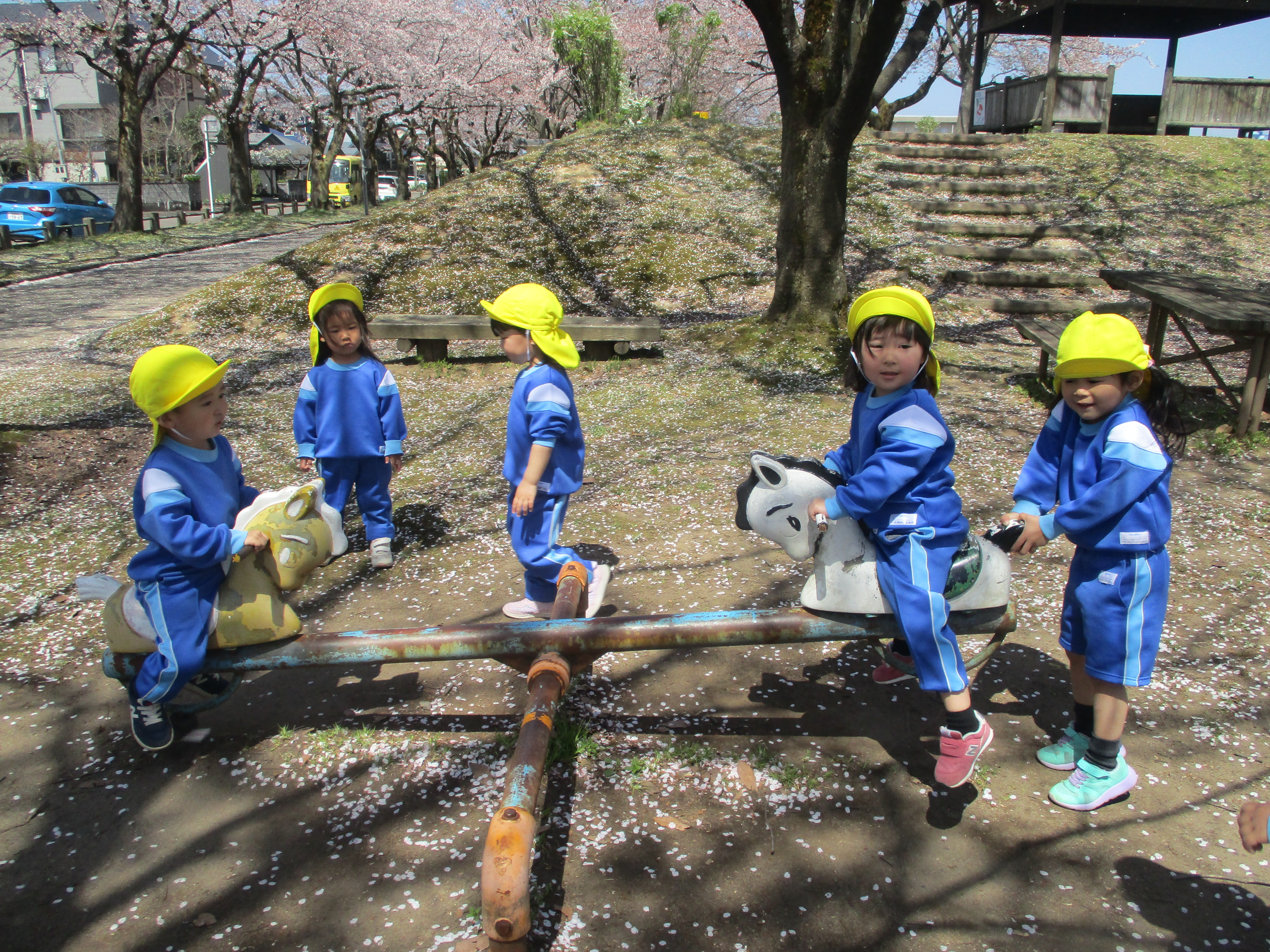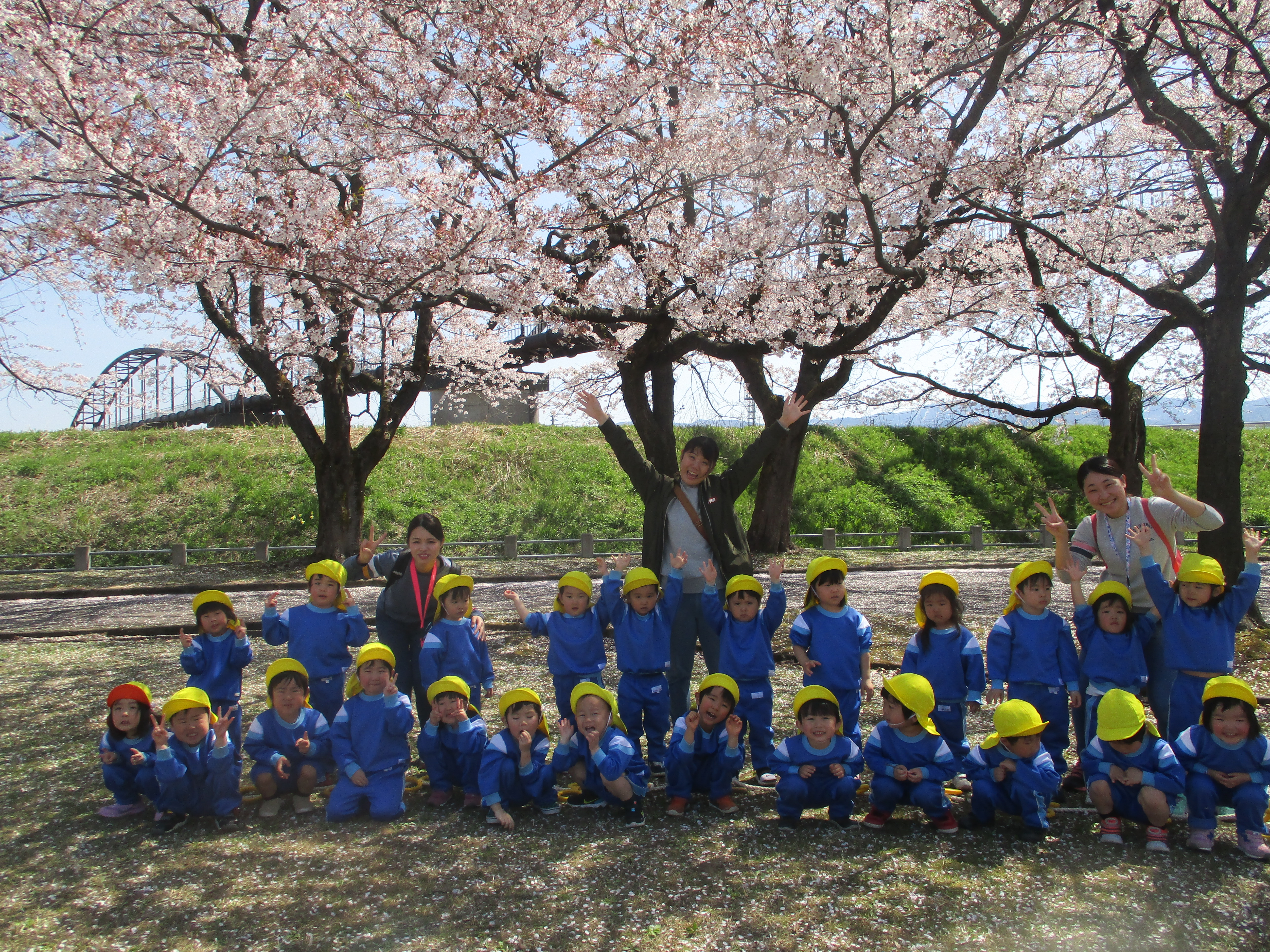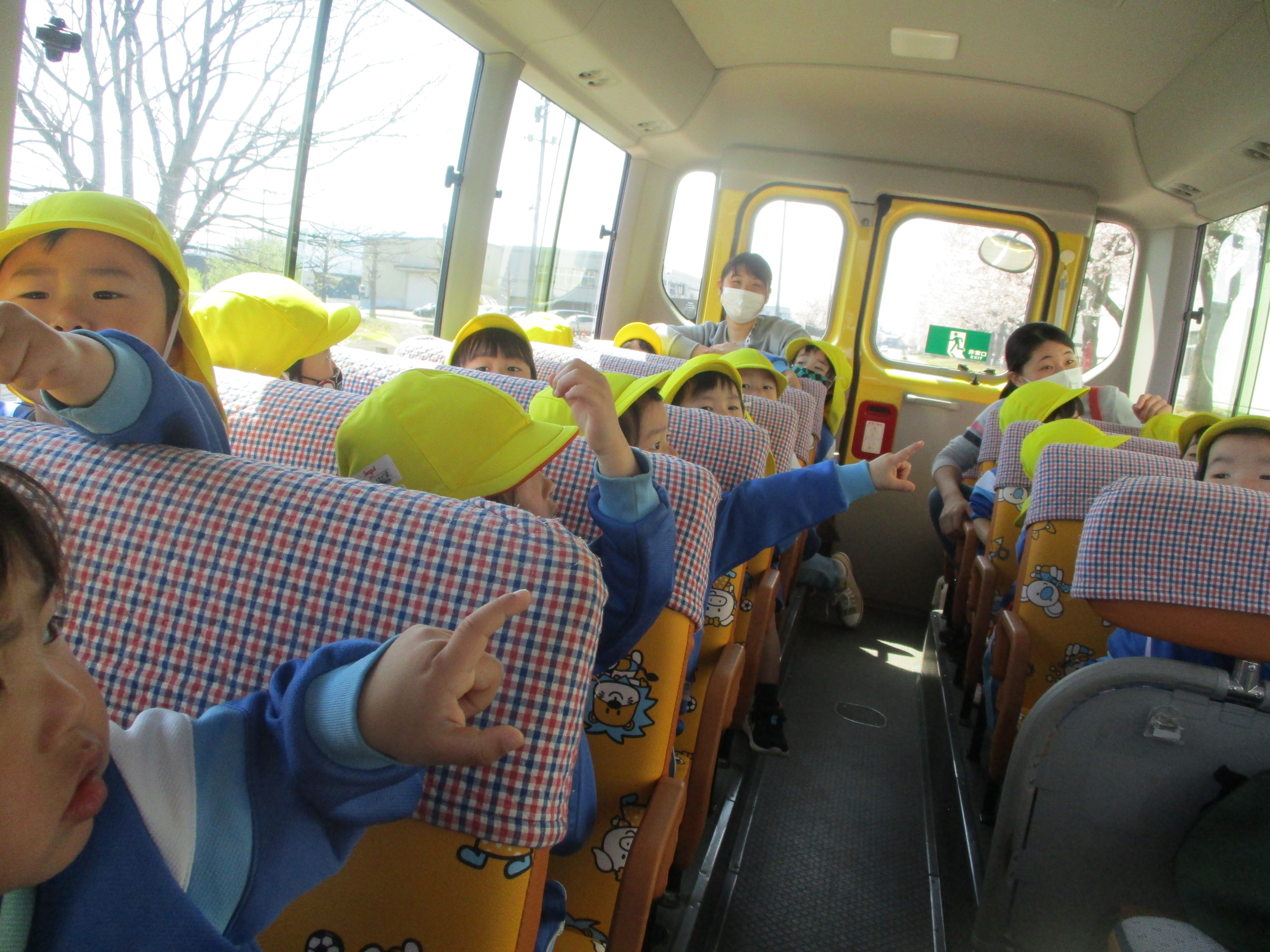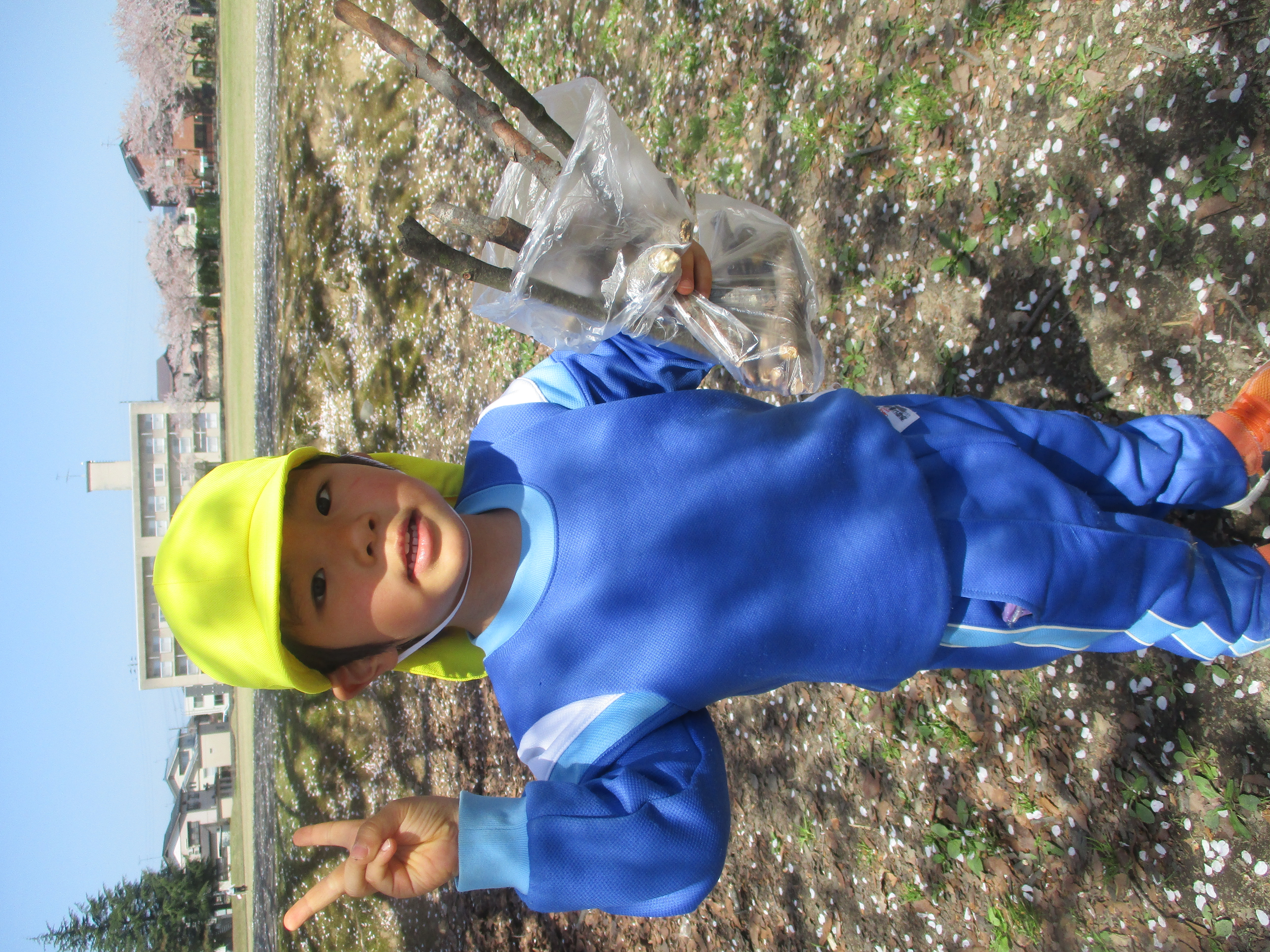 たんぽぽ組 お花見バスツアー! 2021/4/15 木曜日 最終更新日時 : 2021/4/15 木曜日 meikou 4月12日(月) みんなで初めてバスに乗って桜を見てきました! バスから「あ!桜こっちにもあった!」「すごーい!!」と車内は大盛り上がりでした。 今宮公園について、まずはみんなでお散歩! 誘導ロープにしっかりとつかまり、「いちにっ!いちにっ!」 桜の前で集合写真も撮れました! みんなで思い切り走ったり、遊具で遊ぶときは「つぎ貸してね」と声をかけて お友だちとたくさん遊べました! 枝や落ち葉を見つけて「パパとママに見せる!」と 袋にいっぱい詰めている子もいましたよ!