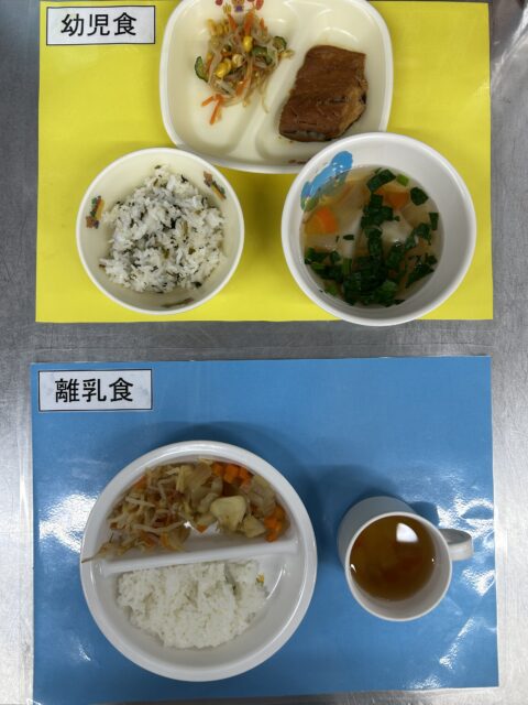 5月2日(金)今日の献立 2025/5/2 金曜日 最終更新日時 : 2025/5/2 金曜日 meikou 〈幼児食〉 ・たけのこごはん ・味噌汁 ・鮭の香味煮 ・なめたけ和え 〈離乳食〉 ・軟飯 ・味噌汁 ・白身魚の煮物 ・もやしのサラダ