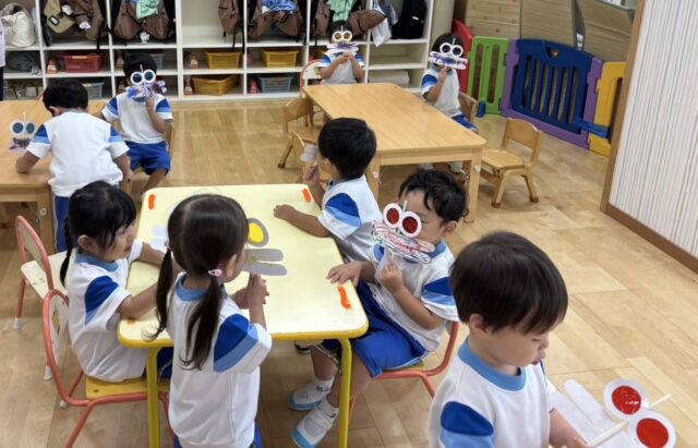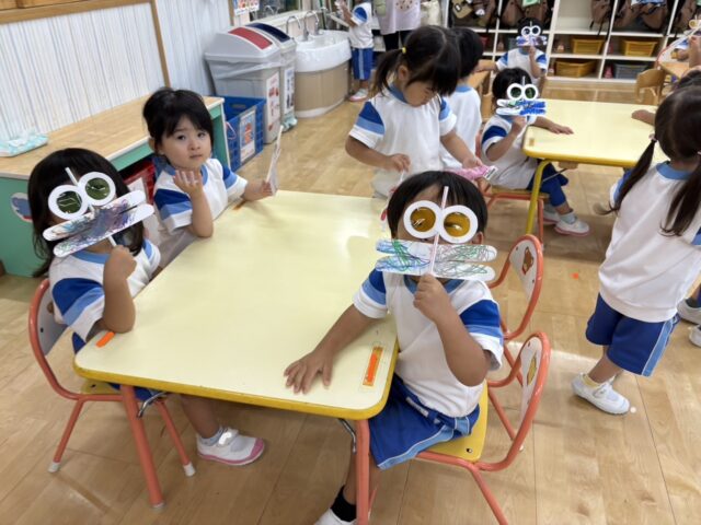 子どもたちの「とんぼ捕まえたい!」「触ってみたい!」の声から、童謡『とんぼのめがね』にちなんだ制作を楽しんだ様子をお届けします☆