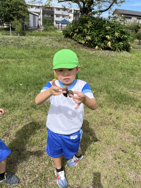 最近、ようやく気温が落ち着き秋らしくなってきました。戸外活動ができるようになり、園庭遊びやお散歩を楽しんでいるぱんだキッズ。末広公園に行って虫探検やまつぼっくり探しなど秋ならではの活動を楽しんできました。