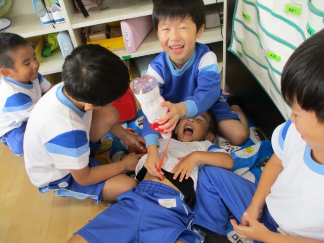 こちらはお医者さんごっこ♪今はお腹の点滴をしているそうです^^