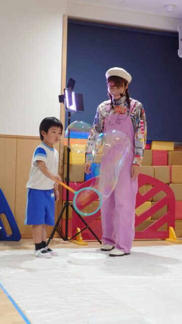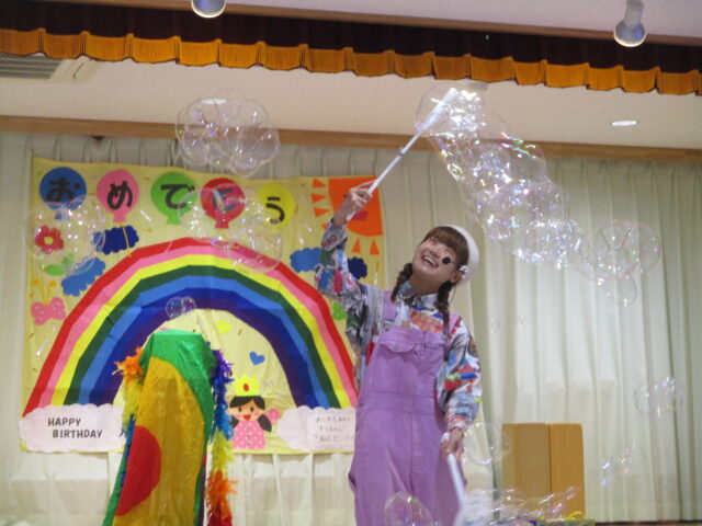 今週の水曜日に観劇があり、マジックショーのひでお兄さんとシャボン玉のかこちゃんが明幸幼稚園すまいる保育園にやってきました!