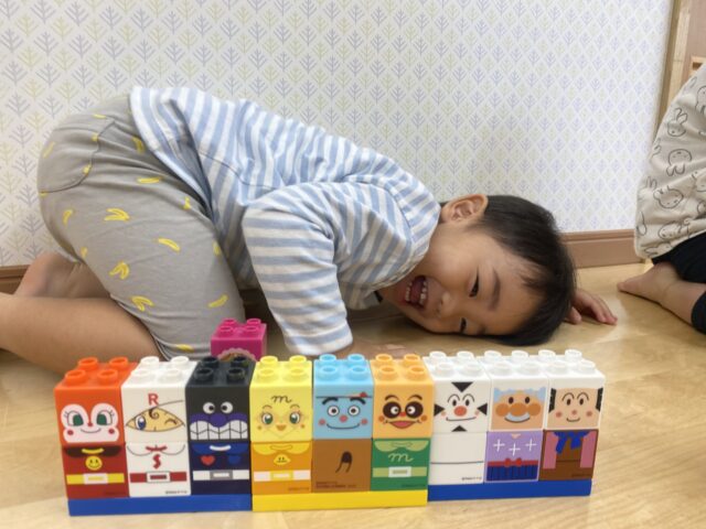 子どもたちはアンパンマンのレゴブロックが大好きで、お部屋に入ると「これがいー!」とリクエストをしています♪