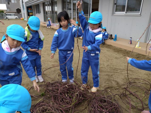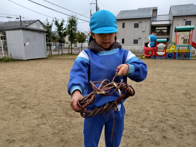 大事に採ったつるは、幼稚園に帰ってきてからリースづくりに使いました。