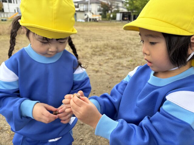 どんぐり拾いに夢中♡色が違うどんぐりを見つけたよ!