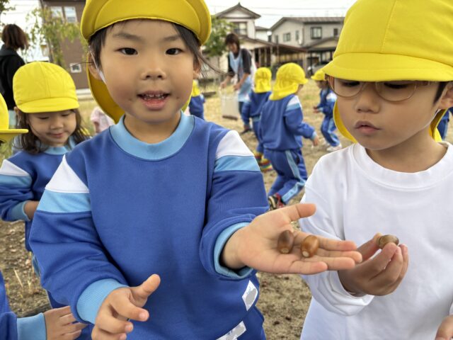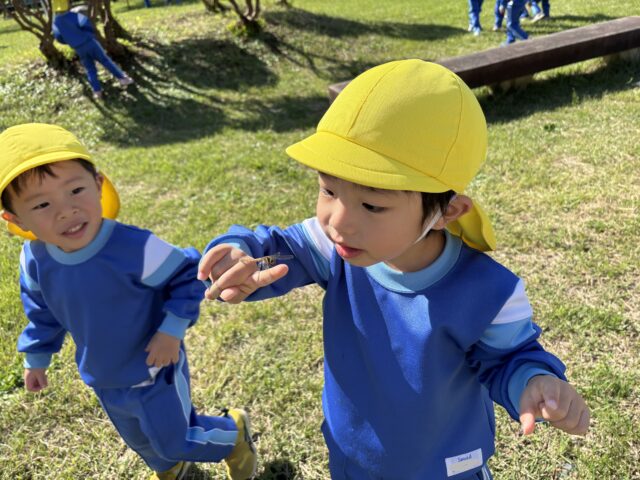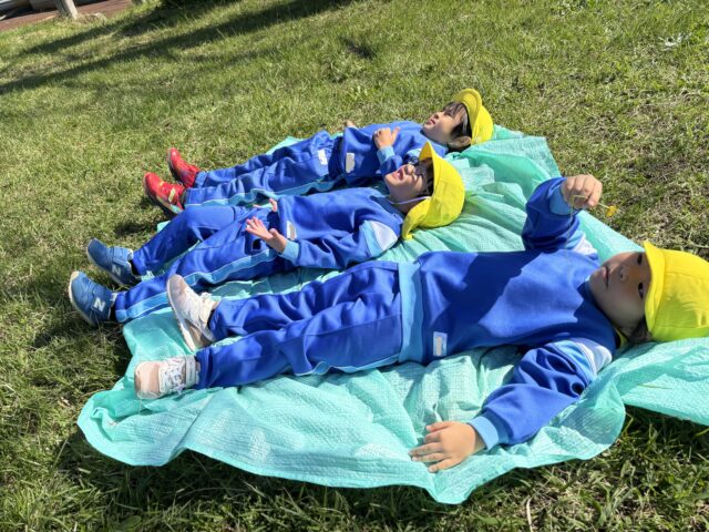 「まぶしーい!」「気持ちいい~♡」「青空きれい!」と広い秋の空に嬉しそうな子どもたちでした😊