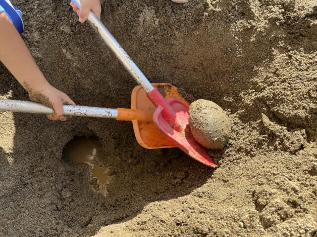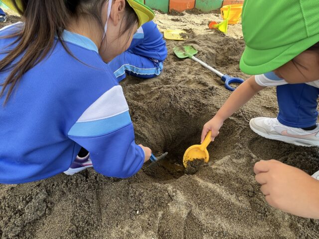 どうやったら深く掘れるか様々な玩具を使いながら試したり、その中でいろんな発見があったようです☆
