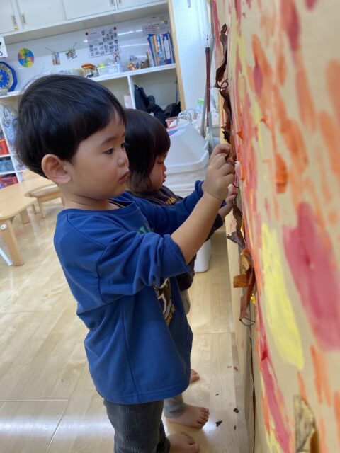 いつもはすぐに他の遊びに移る子も、思い出の木の制作に親しみをもちながら意欲的に参加する姿が見られました✨