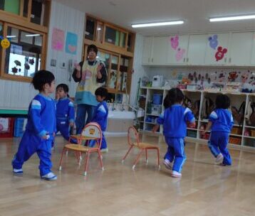 ピアノの音に合わせて椅子の周りをあるいて・・・