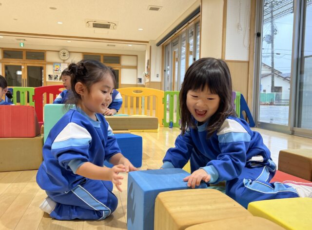たんぽぽ組 積み木大好き! 投稿:2025年11月14日 みんな大好き大型積み木! 思い思いに楽しんでいます😊 バイクでブ~ン!! お城を作ったよ✨ シーソーだよ! お家を作るよ~♪ 見立て遊びが上手になってお友だち同士の関わりを楽しんでいます😊