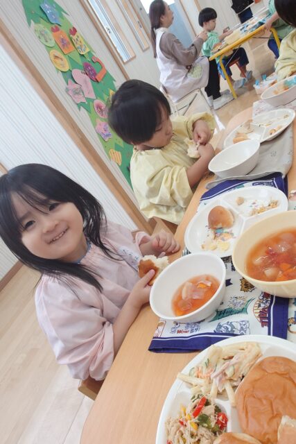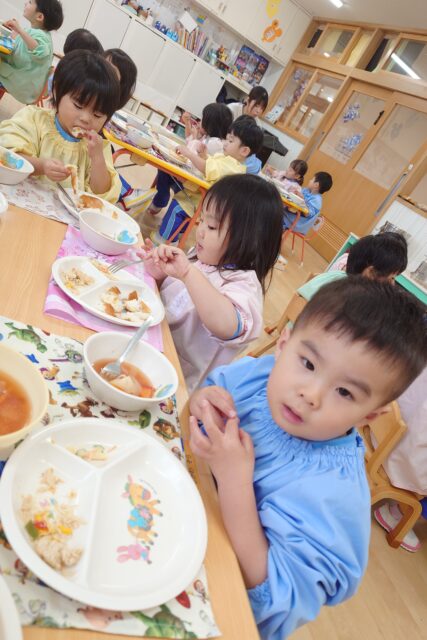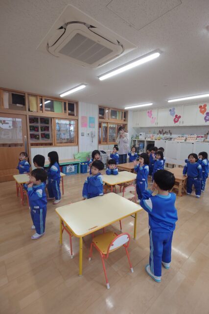 この日は天候が悪く、戸外に出られなかったため室内遊びです