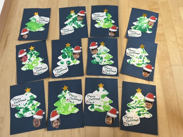本日持ち帰ります。周りに絵を描いたりして飾りつけをしてもいいですよ!オリジナルのクリスマスツリーを作ってみてくださいね!