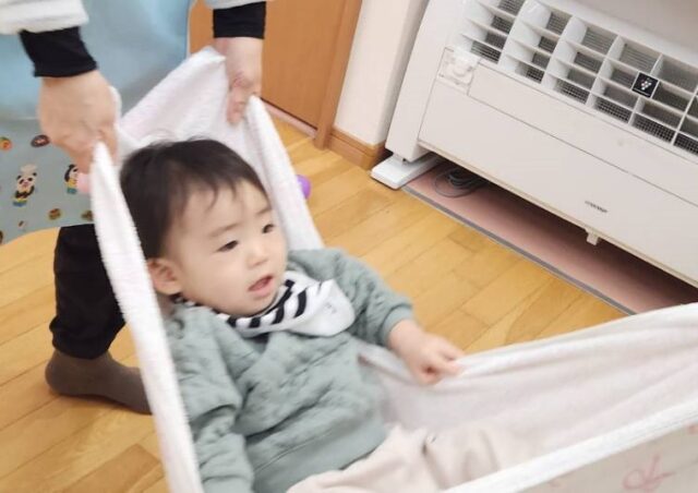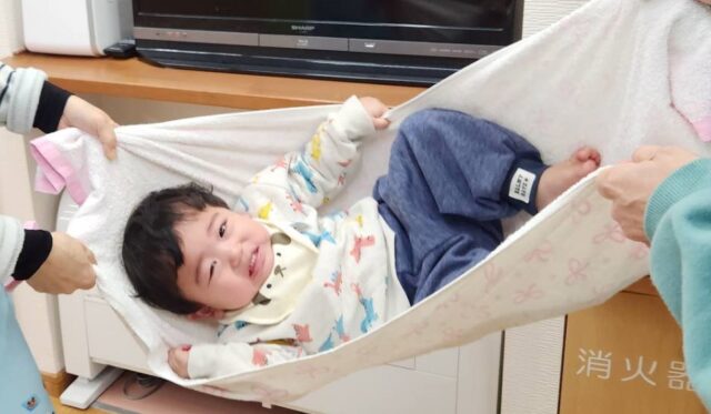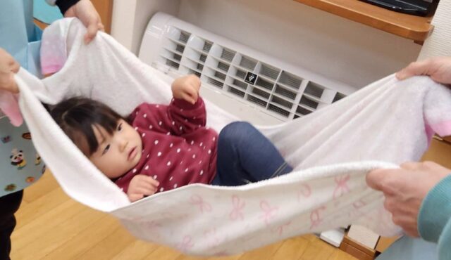プリン組 ユラユラハンモック 2025/12/26 金曜日 最終更新日時 : 2025/12/26 金曜日 meikou バスタオルに乗ってユラユラ~ 何しているのかな? と気になって近づいてくるけど いざ乗ってみると ニコニコ顔の子や、怖がって固まる子など 反応は様々でした。 楽しい~ どうなってるんだ やだ~こわいよ~ うわあ~~! ガッチガチです 思ったよりこわかった・・・ たくさん保育園であそんで仲良しになったね 新年からまた、いっぱい遊ぼうね‼