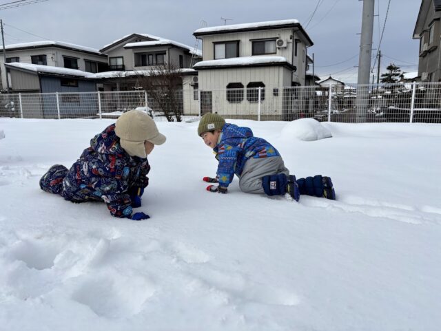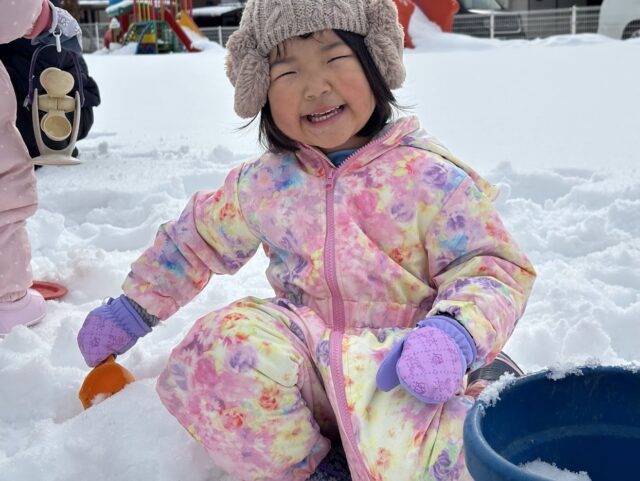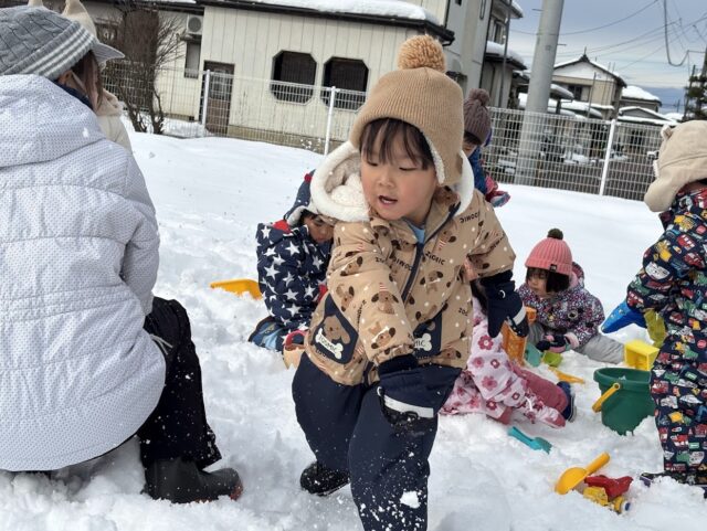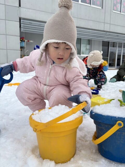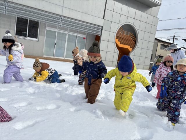 なんと園庭一番乗りで雪遊びを楽しみました!❄⛄