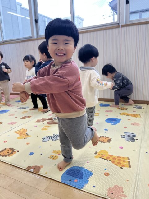 今週は幼稚園のお兄さんお姉さんのお遊戯会の練習をたくさん見学に行き、真剣な表情で見ていて、いい刺激をもらったマカロンキッズ。お部屋ではマカロンキッズも少しずつお遊戯会の練習を始めています。まだお楽しみにしていてほしいので、今回は今月の体操「秘伝!ラーメン体操」の様子とホールでたくさん走っている様子をお届けします♡