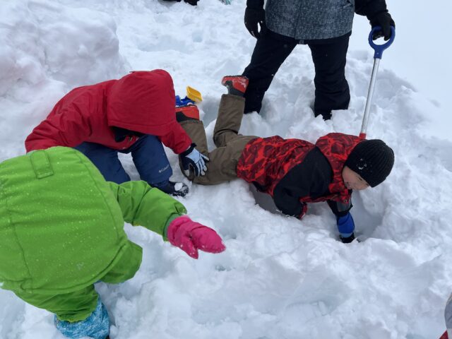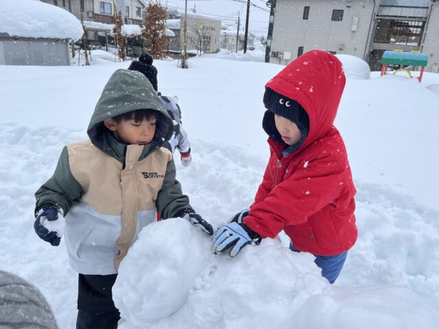 ぱんだ組 楽しい雪遊び 2026/2/9 月曜日 最終更新日時 : 2026/2/9 月曜日 meikou 雪遊びが大好きなぱんだキッズ☆毎日「今日は雪遊びするー!?」と心待ちにしています。外に出るとみんなの背よりはるかに高い雪に大喜びでした! ふわふわな雪で埋まりながらも、ダイブしたり寝転がったりとダイナミックに楽しみました。 気持ちいい! 高く積み上げるよ ででーん スコップで掘るぞ ジャーンプ!! よいしょ、よいしょ 発表会に向け毎日頑張ってきました。遊ぶ時は思い切り遊びこれからも雪遊びを楽しんでいきたいと思います!