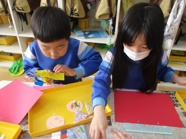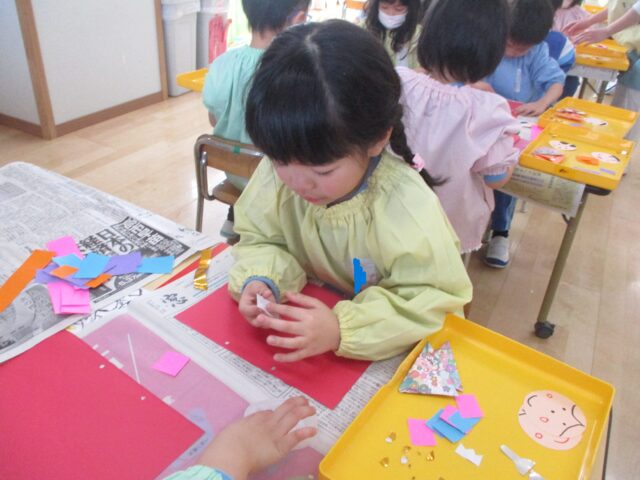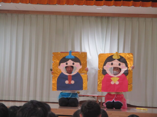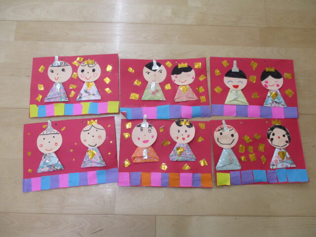 ぱんだ組 ひな祭りに向けて☆ 2026/2/26 木曜日 最終更新日時 : 2026/2/26 木曜日 info 3月はひな祭りがありますね!お部屋で制作をしたりホールではひな祭りについての劇を見ました。 お雛様とお内裏様の洋服を折り紙で折ったり、ハサミを作ったりと様々な工程がありましたがしっかりと先生のお話を聞いて取り組んでいました。 わたしたちは誰でしょう!? ここにのりを付けて… ハサミで切るよ 完成してきた! 可愛らしくできました♡ 年長さんの部屋には大きな雛飾りが飾ってあり、みんなで見に行きました。 「三人官女」「五人ばやし」「金の屛風」などひな祭りについて詳しくなったみんなでした!