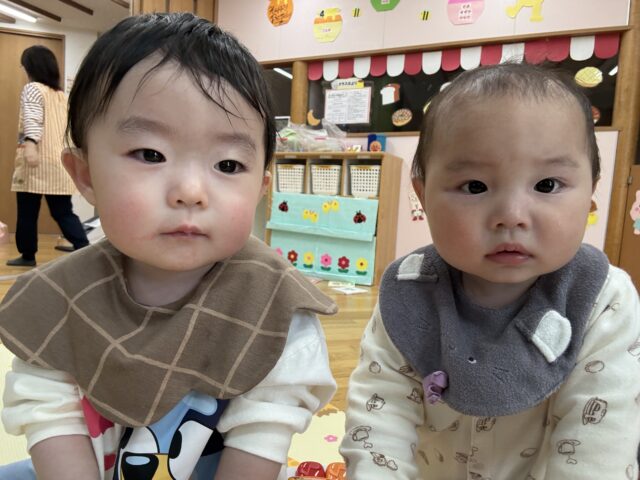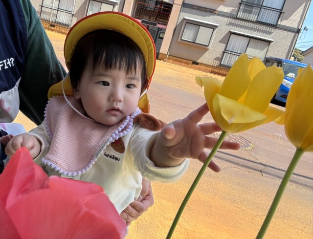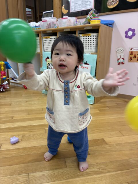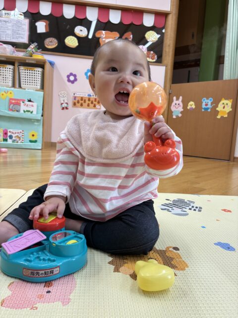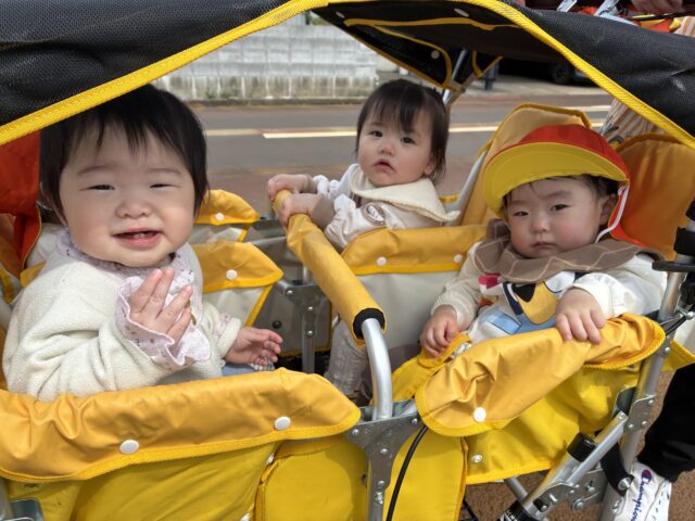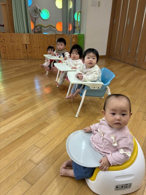 プリン組 入園から約3週間が経ちました 2026/4/24 金曜日 最終更新日時 : 2026/4/24 金曜日 meikou 今月から始まった初めての園生活。不安で泣いてばかりいたお友だちも少しずつ園での生活に慣れてきて笑顔を見せてくれるようになりました。これから1年間、楽しい遊び、好きなもの、一緒にたくさん見つけようね! カートに乗ってお散歩へ出発! きれいなお花だね 音が鳴って楽しいよ! 風船ゲットしたよ! わたしも風船つかまえた♪ お友だちと並んでつかまり立ちしたよ! これから大好きなおやつタイム♡