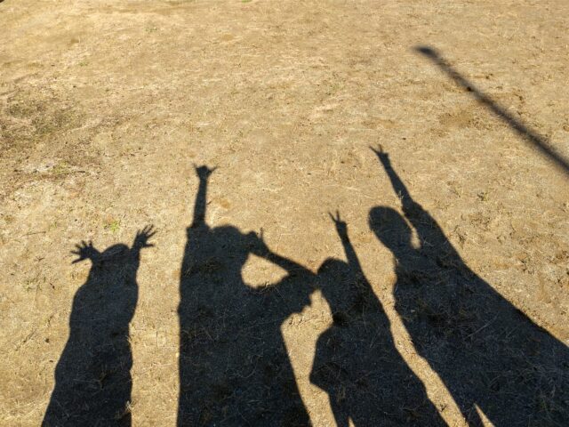 秋晴れの園庭。 つき組の子どもたちは、お日様とも仲良し。 影の形がくっきり! みんなで♡ いろんなポ…